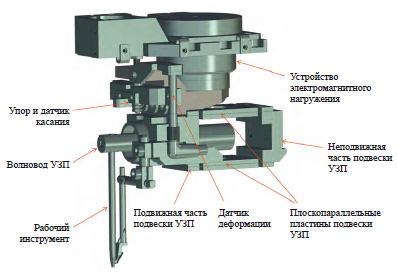 In the bonding cycle, after the moment of contact is determined, the drive unit moves the bonding head vertically by the value of a predetermined distance of approximately one diameter of the bonding wire. This causes the movable part of the UST mount to rise and the force to increase. This increase is compensated by the automatic reduction of the current in the electromagnetic coil, which allows maintaining the preset force at the specified level. The bonding force during bonding is compensated in the same way, with the difference that the vector of force compensation changes – the force should increase with an increase in the deformation of the bonding wire. The implementation of the proposed algorithm made it possible to improve the bonding force stabilization to 20% when bonding thick wire, as well as to improve bonding quality. The proposed solution is also applicable in other technological ultrasound bonding systems, including bonding wire with the diameter of <100 microns.