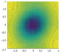 Analysis of the simulation results reveals that the anisotropy coefficient governs the geometry of the eddy current loops: for K > 1, the elongation of the elliptical contours occurs along the axis with higher conductivity, while for K < 1, it occurs along the orthogonal axis. The angle γ determines the orientation of the principal axes within the laboratory plane and, consequently, the direction of elongation of the eddy structures. Meanwhile, the rotation direction of the eddy electric currents (CW/CCW) remains constant and is determined by the polarity of the applied voltage.