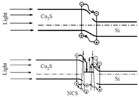 The paper describes the manufacturing technology and presents the results of studies of a pCu2S–nSi heterojunction (HJ) and an HJ based on it, containing a nanocluster (NC) subsystem. It is shown that the presence of an NC subsystem at the interface between the p-type Cu2S film and the n-type Si substrate significantly increases the overall sensitivity of the samples under high illumination conditions. The operating mode of such an HJ as a highly sensitive valve photocell has been determined. It has also been demonstrated that these transitions are photoelectrically active in different spectral regions. The observed effects are extensive in nature, being largely determined by the geometry and morphology of the nanocluster centers rather than by the type of atoms from which they are formed.